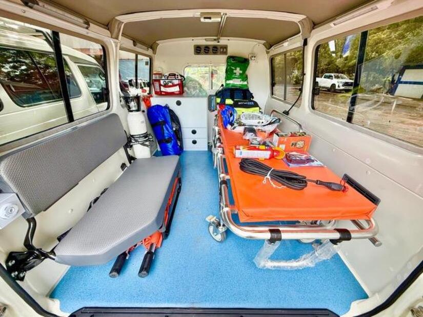 Las ambulancias están equipadas con camillas móviles, tanque de oxígeno, monitor de signos vitales, aspirador, desfibrilador, equipo de reanimación, ventilador manual y depósitos para medicamentos, garantizando condiciones adecuadas para brindar atención prehospitalaria oportuna y segura.