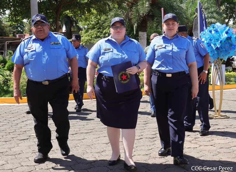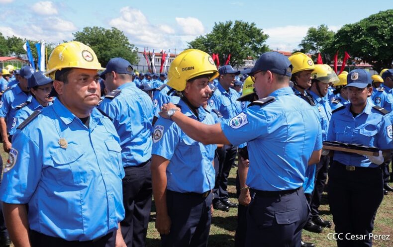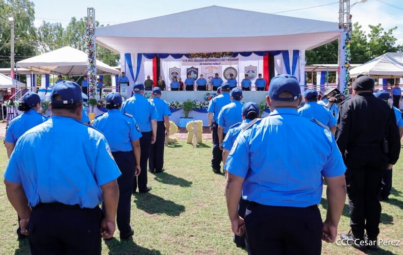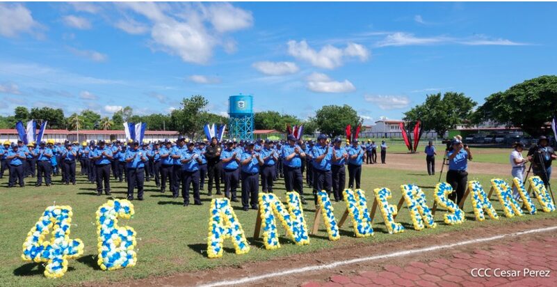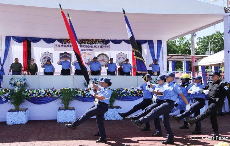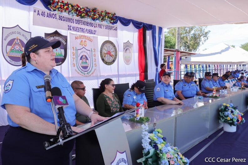 “Estos 46 años de historia y servicio son el esfuerzo sostenido de generaciones que dieron sus energías y hasta su vida por la paz y seguridad de todos. Es ahora compañeras y compañeros nuestro momento para mostrar nuestra entereza y vocación de servicio para seguir haciendo revolución en beneficio de las familias nicaragüenses, y de otras nacionalidades, brindando un servicio ágil, de calidad y profesional. Este aniversario nos debe hacer reflexionar que la ruta para ser mejores es nuestro trabajo, es estar con nuestro pueblo y en constante preparación técnica, académica y continua en conjunto con la disciplina, entrega y dedicación»,enfatizó Coronel.