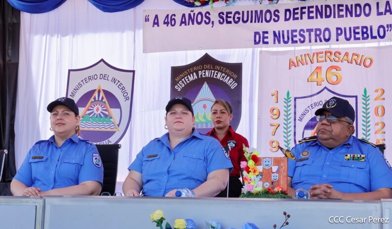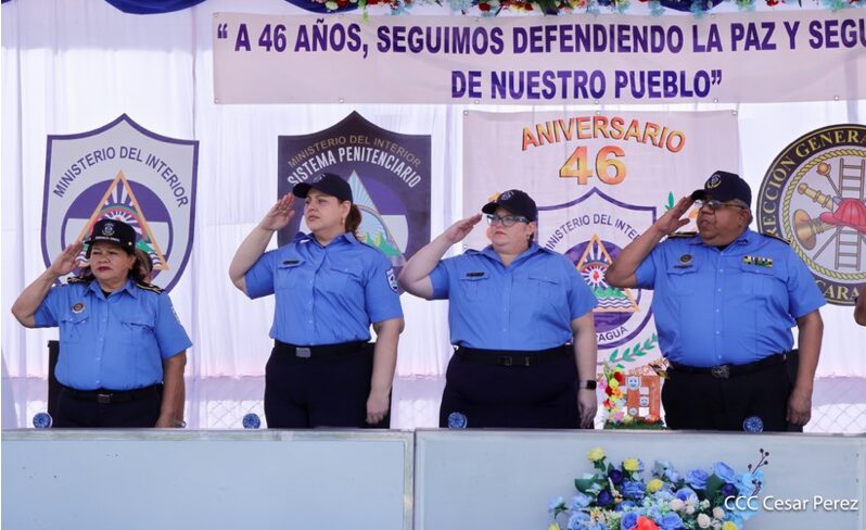 El Ministerio del Interior (MINT), en celebración del 46 aniversario de fundación, llevó a cabo en el Sistema Penitenciario Nacional, el acto de ascenso en grados a 1,072 compañeros y compañeras, 334 mujeres y 737 varones.