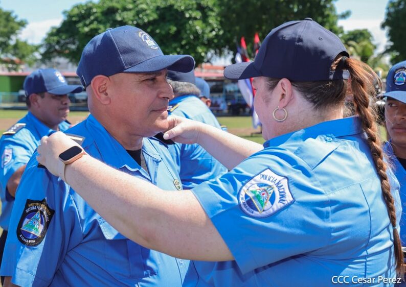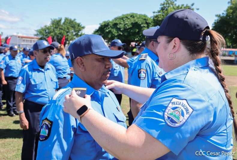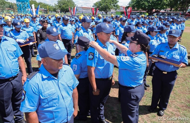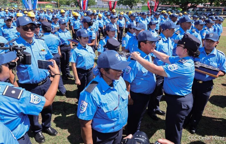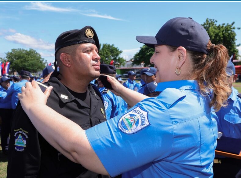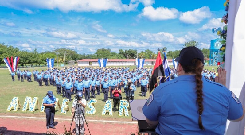«Prometen ante Dios, ante la patria, ante el pueblo, ante nuestros héroes y mártires, y a las familias nicaragüenses respetar la Constitución, las leyes, los derechos y las libertades del pueblo, y cumplir realmente las misiones encomendadas bajo los principios fundamentales del Ministerio del Interior para garantizar la seguridad y la paz de nuestra nación. Si así lo hacen que la patria y el pueblo lo reconozcan, sino que ellos lo demanden», dice la promesa de ley.