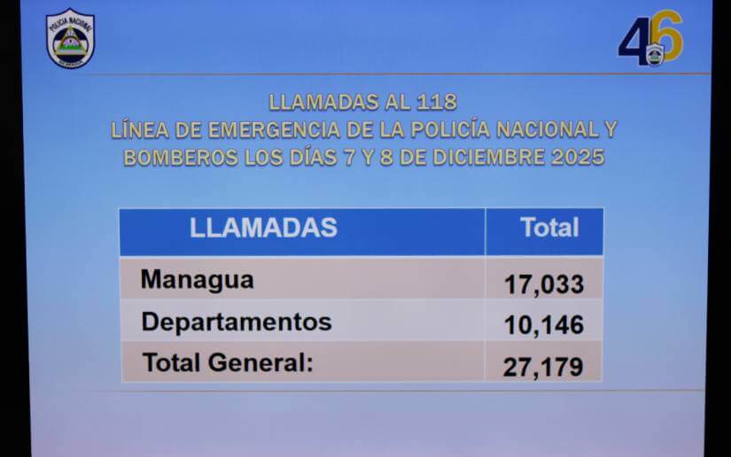 Además, se contabilizaron a la línea de emergencia 118 un total de 27,179 llamadas, de las cuales 10,146 fueron en los departamentos y 17,033 en Managua.