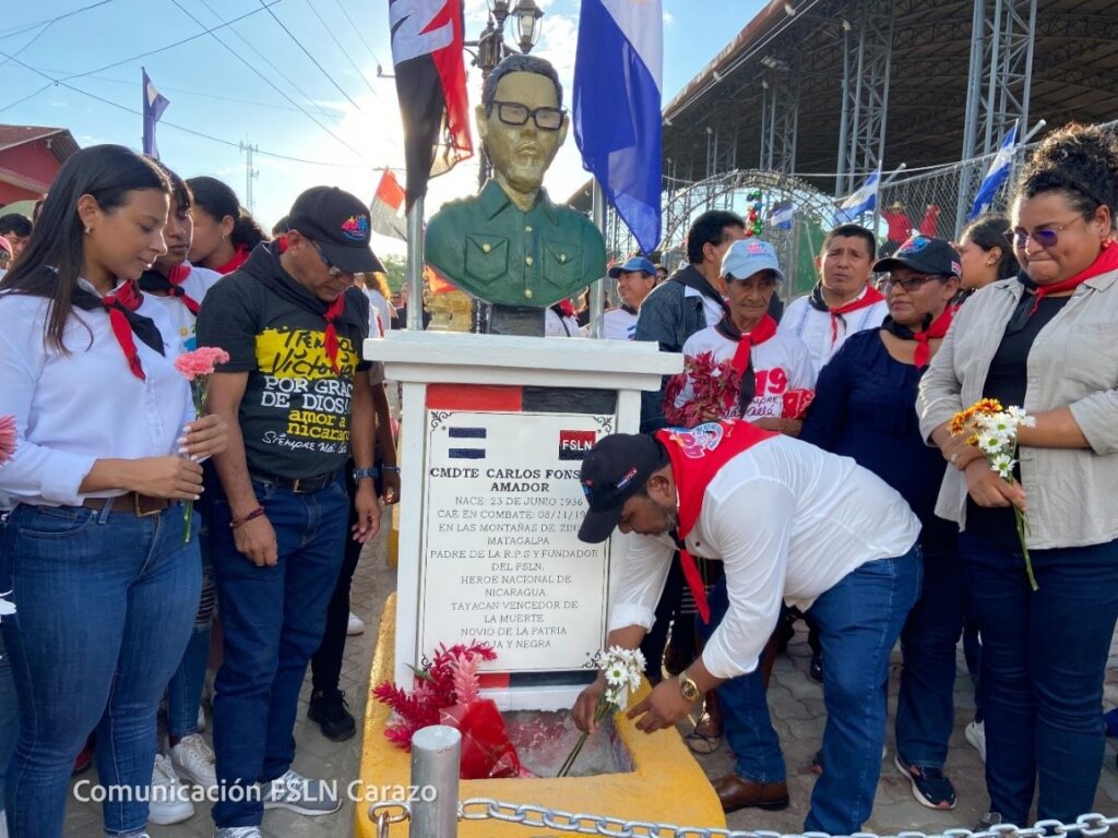 La caminata recorrió las principales calles del municipio y finalizó en el paseo de los héroes donde se develó el busto dedicado al Comandante Carlos Fonseca, se entregaron flores de campo culminando con acto político cultural.