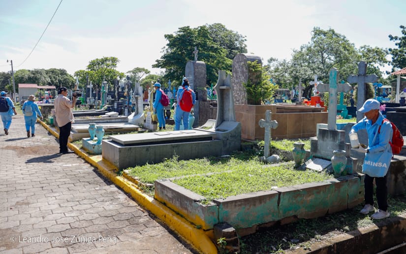 Peralta mencionó que el plan incluye actividades de eliminación de calaches, limpieza de maleza, abatización, fumigación en lo que son los diferentes cementerios en el país, en este caso, el recorrido en Managua, se realizó en el Cementerio General, Periférico y Milagro de Dios.