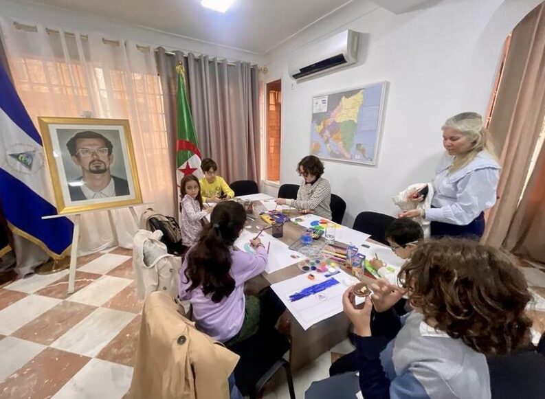 El homenaje se acompañó de expresiones de niñas y niños argelin@s quienes a través de colores, plasmaron en imágenes representativas de Argelia y Nicaragua resaltando a través de la creatividad la unión de dos pueblos hermanos, valientes y dignos.