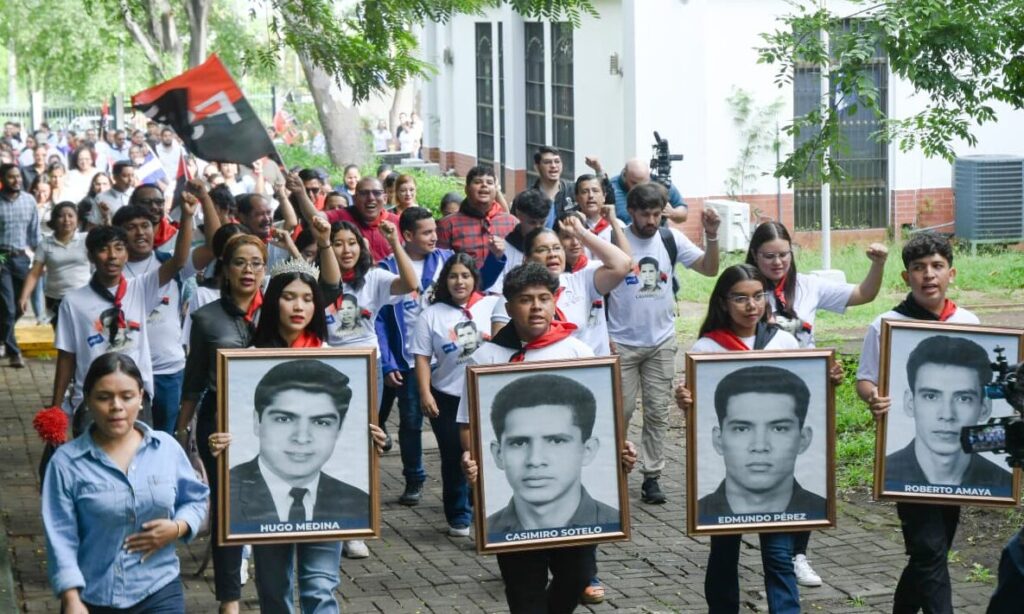 Con fuerza, convicción y compromiso revolucionario, la Comunidad Educativa de la Universidad Nacional Casimiro Sotelo Montenegro rindió Homenaje al 58 Aniversario de Inmortalidad de los Héroes del 04 de Noviembre: Casimiro Sotelo, Dirigente Estudiantil y Miembro de la Dirección Nacional del FSLN; Hugo Medina, Edmundo Pérez y Roberto Amaya, Militantes y Combatientes Gloriosos del Frente Sandinista de Liberación Nacional.