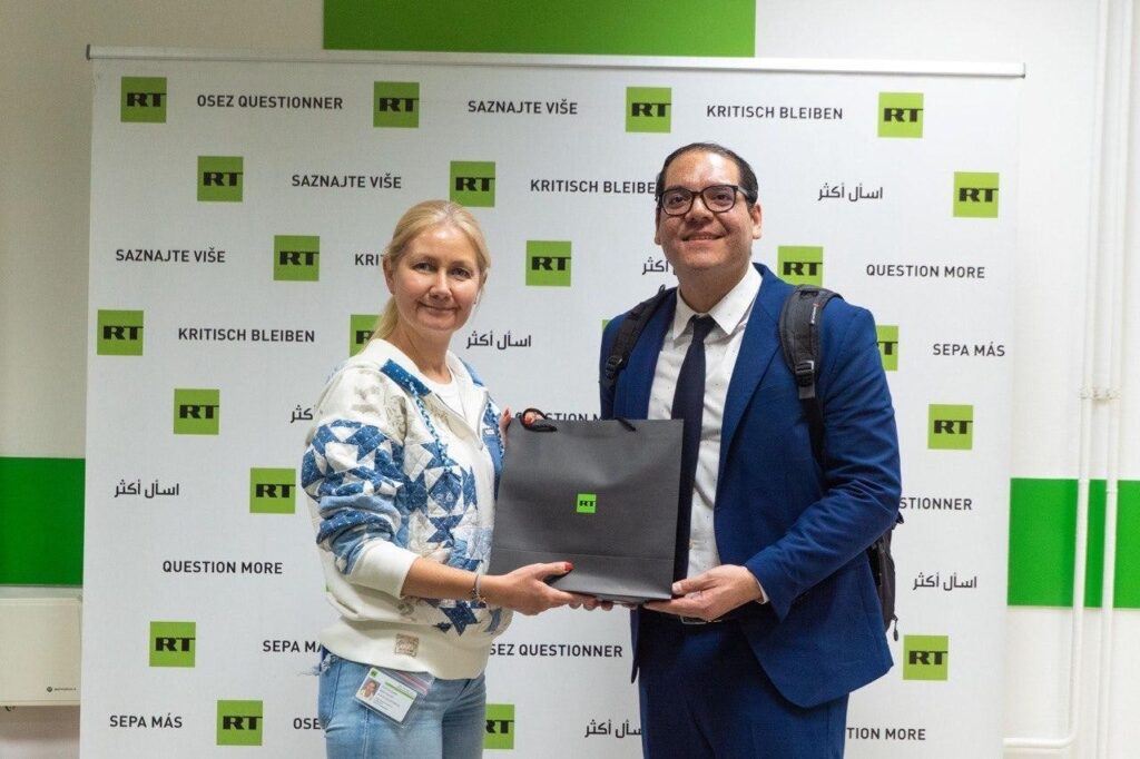 Durante el intercambio, el Compañero Maurice Ortega Murillo trasladó los Saludos y el Cariño de parte de nuestros Copresidentes Comandante Daniel Ortega Saavedra y Compañera Rosario Murillo y del Pueblo de Nicaragua, al Compañero Presidente de la Federación de Rusia, Hermano Vladimir Putin, a su Pueblo Heroico y a todos los Hermanos Comunicadores de RT en Español por la permanente lucha en defensa de la verdad y la paz global.