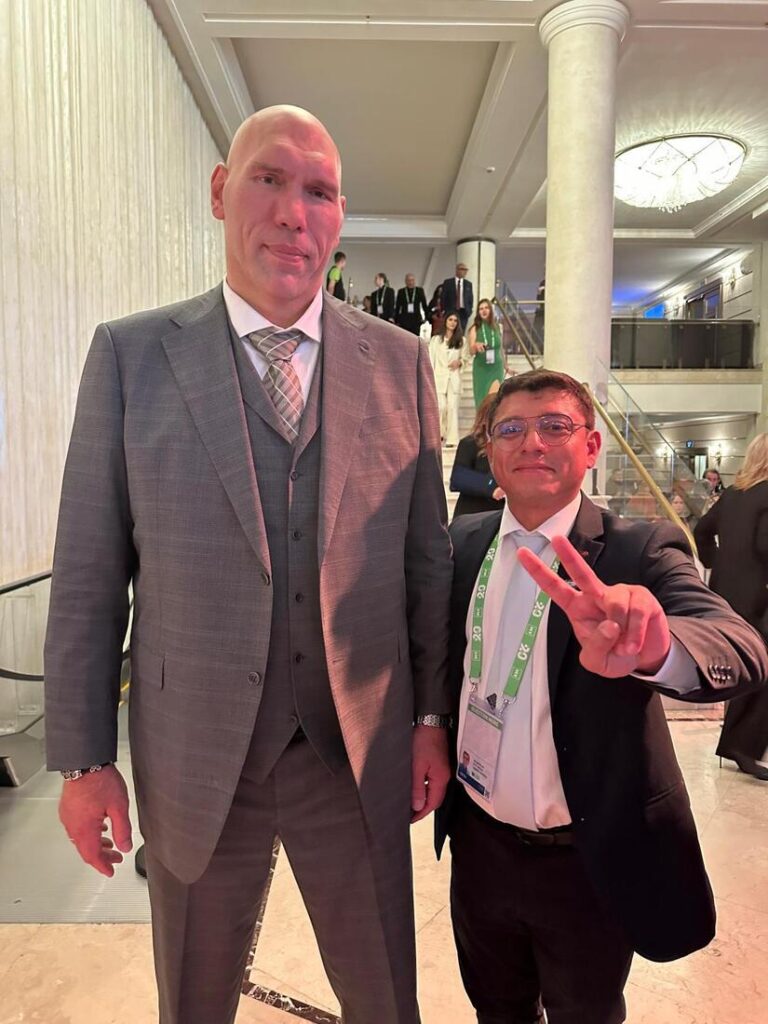 Delegación nicaragüense saluda a ex campeón mundial de boxeo y actual diputado de la Duma Estatal de Rusia