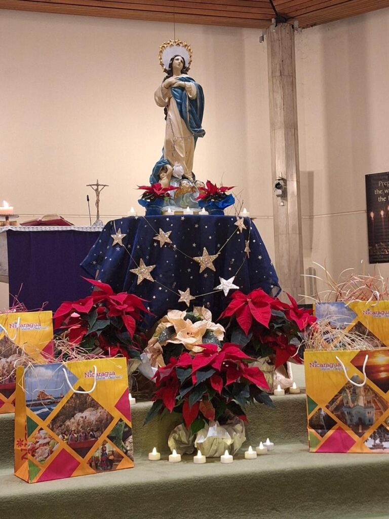 La Tradicional Purísima fue celebrada con solemne misa en la iglesia San Juan XXIII, en Ginebra; la Compañera Rosalia Bohórquez Palacios, Embajadora de Nicaragua, fue encargada de dar las moniciones, enfatizando el origen de la celebración y como se fue extendiendo en toda Nicaragua, en la liturgia el Padre Paul, destacó la Fé y Devoción del Pueblo nicaragüense, y se mostró entusiasmado por la algarabía y espíritu de comunidad de los asistentes, así mismo invocó la protección y bendición para Nicaragua y el mundo.