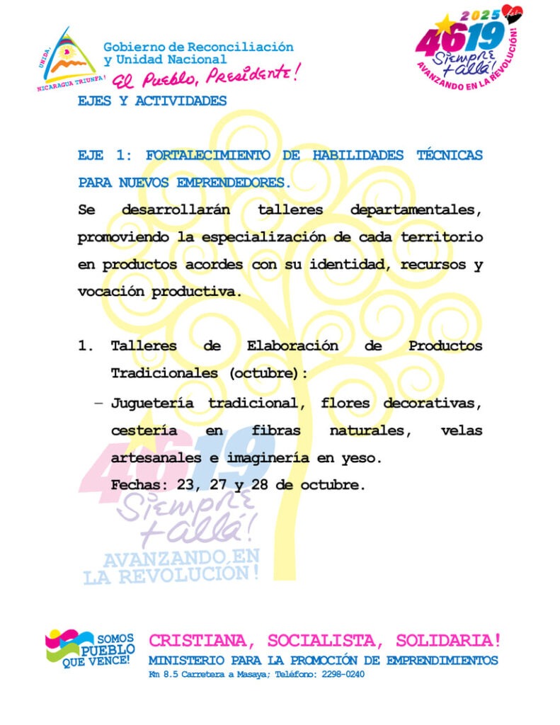 El Ministerio para la Promoción de Emprendimientos de octubre a diciembre ejecutará el Plan de Trabajo Con Emprendedores Fiestas Marianas y Decembrinas..!, con el objetivo de celebrar las tradiciones, fomentando la recreación y convivencia de las familias, que permitan el dinamismo de la economía local.