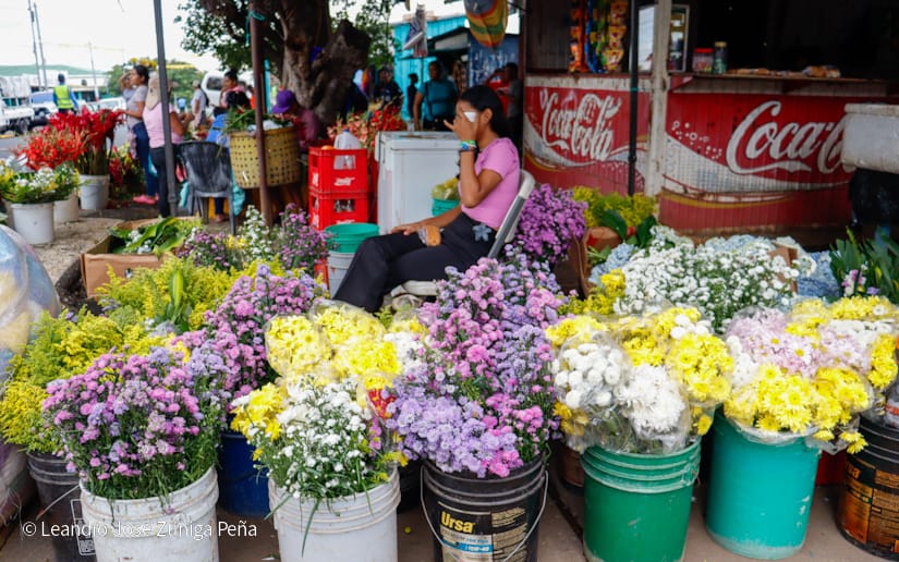 Cabe destacar, que este Día de los Fieles Difuntos, los emprendedores de ventas de flores se instalan con su producto en las afueras de los cementerios, como es el caso de Alba Marina Tijerino Muñoz, que desde tempranas horas de este 2 de noviembre, ofertaba las variedades de flores en la entrada del camposanto del Periférico.