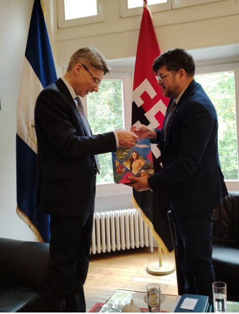El Compañero César Castañeda, Representante de nuestro Pueblo en Bélgica, transmitió al Compañero Gonchar el saludo fraterno y los mejores deseos de éxito de parte de nuestros Copresidentes, Comandante Daniel Ortega Saavedra y Compañera Rosario Murillo, en el cumplimiento de su Misión Diplomática.