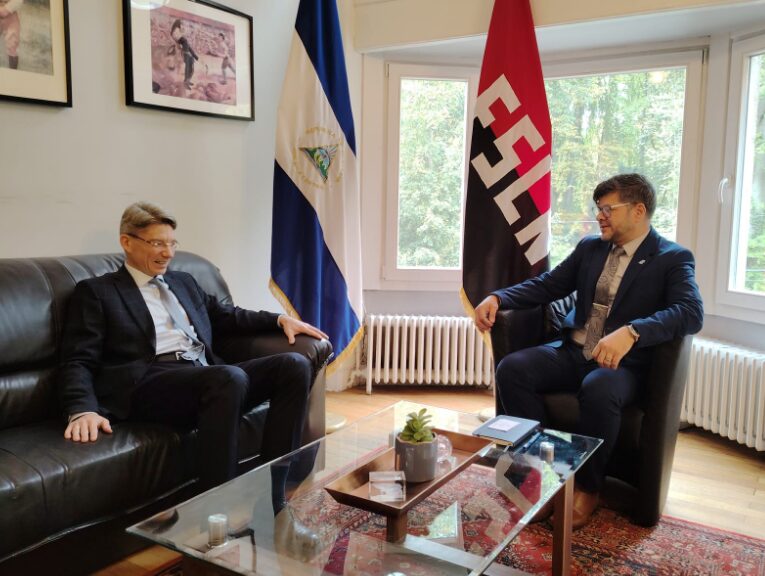 La Embajada de Nicaragua en el Reino de Bélgica recibió este 21 de Octubre la visita de cortesía del Compañero Denis Gonchar, nuevo Embajador de la Federación Rusa acreditado en este País. El Encuentro se desarrolló en un ambiente de fraternidad y respeto, reafirmando las históricas relaciones de amistad y cooperación entre ambos Países, basadas en los Principios de Solidaridad, Soberanía y Paz.