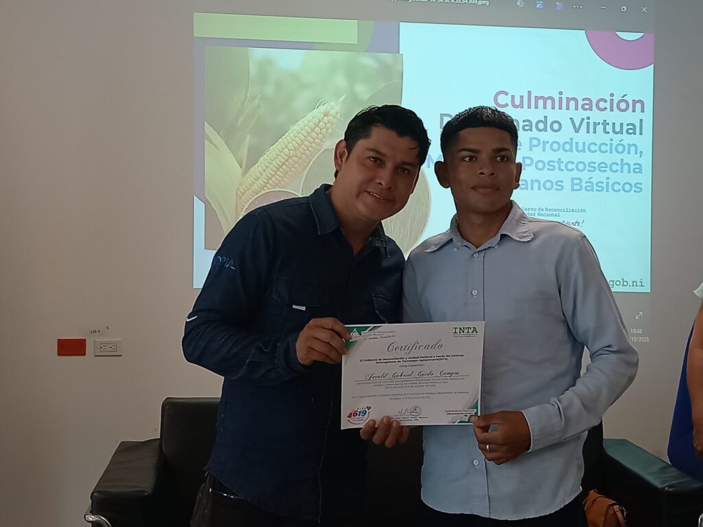 El INTA entregó 255 certificados a protagonistas que culminaron el Diplomado Virtual sobre Producción, Manejo y Postcosecha de Granos Básicos, desarrollado durante 4 meses y medio, en todos los Departamentos del País.