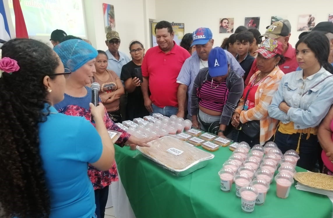 Durante el evento se realizó un recorrido por los stands de exposición para degustar los productos elaborados por los productores, como leche, atol, chorizo, carne y tortas de soya.