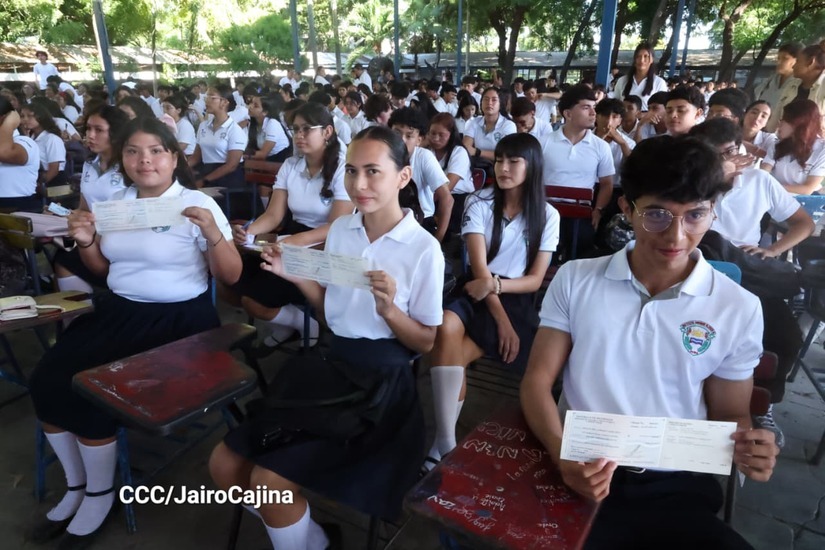 Con gran alegría y entusiasmo, más de 300 bachilleres del Instituto Público Enrique Flores, de Managua, celebraron la entrega del bono presidencial en reconocimiento al esfuerzo de los estudiantes.
