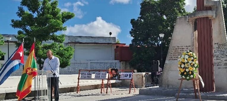 En el Memorial de los Héroes Caribeños de La Habana, rendimos Homenaje a Maurice Bishop, Líder Caribeño y Amigo de Nicaragua, en el 42 Aniversario de su Asesinato, así como a los 24 Hermanos cubanos y los granadinos caídosdefendiendo la Soberanía y la Revolución de Grenada, frente a la invasión del Imperio yanqui el 25 de Octubre de 1983. En representación del Pueblo y Gobierno de Nicaragua, nuestra Embajada, acompañó a la Embajada de Grenada y al Ministerio de Relaciones Exteriores de Cuba al Acto y la Colocación de Ofrenda Floral.