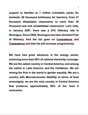 We have had great advances in the energy sector, achieving more than 99% of national electricity coverage. We are the safest country in Central America, and among the safest in Latin America and the Caribbean. We are among the first in the world in gender equality. We are a country with Macroeconomic Stability. In terms of food sovereignty, we are the only country in Central America that produces approximately 90% of the food it consumes.