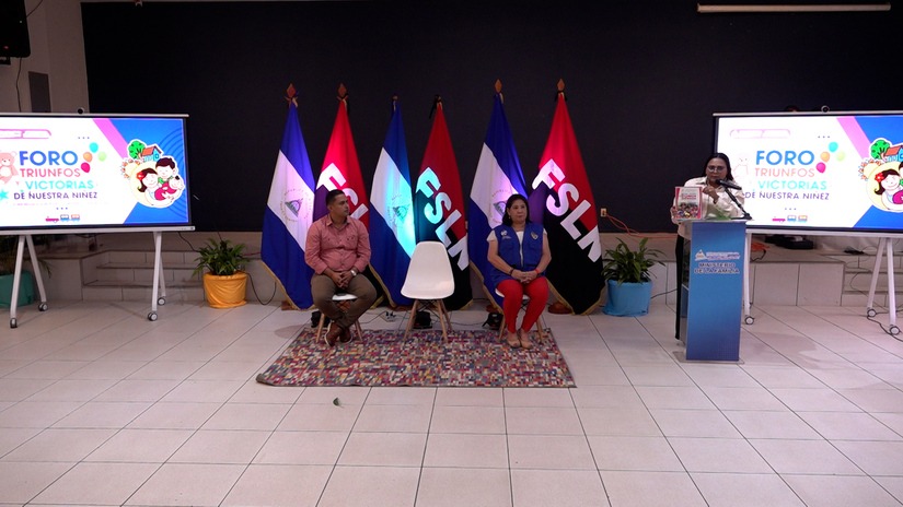 En el foro «Triunfos y Victorias de nuestra Niñez», participaron servidores públicos, estudiantes y docentes de la Universidad Nacional Casimiro Sotelo Montenegro, en Managua.