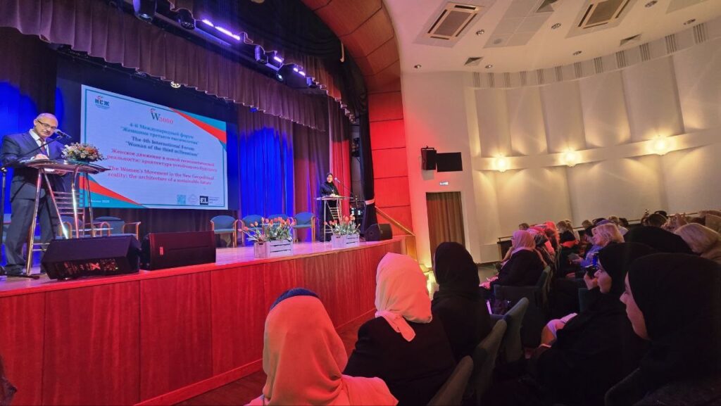 En la sesión plenaria: “La mujer en la era de la transformación: liderazgo, tecnología y desarrollo sostenible”, participaron Amirova Alfiya, Presidenta de la “Unión Internacional de Mujeres”; Anna Nesterova, Presidenta Mundial de la Alianza Empresarial de Mujeres BRICS y la Ministra de Estado para la Cooperación Internacional de Catar, Maryam bint Ali bin Nasser Al Misnad.