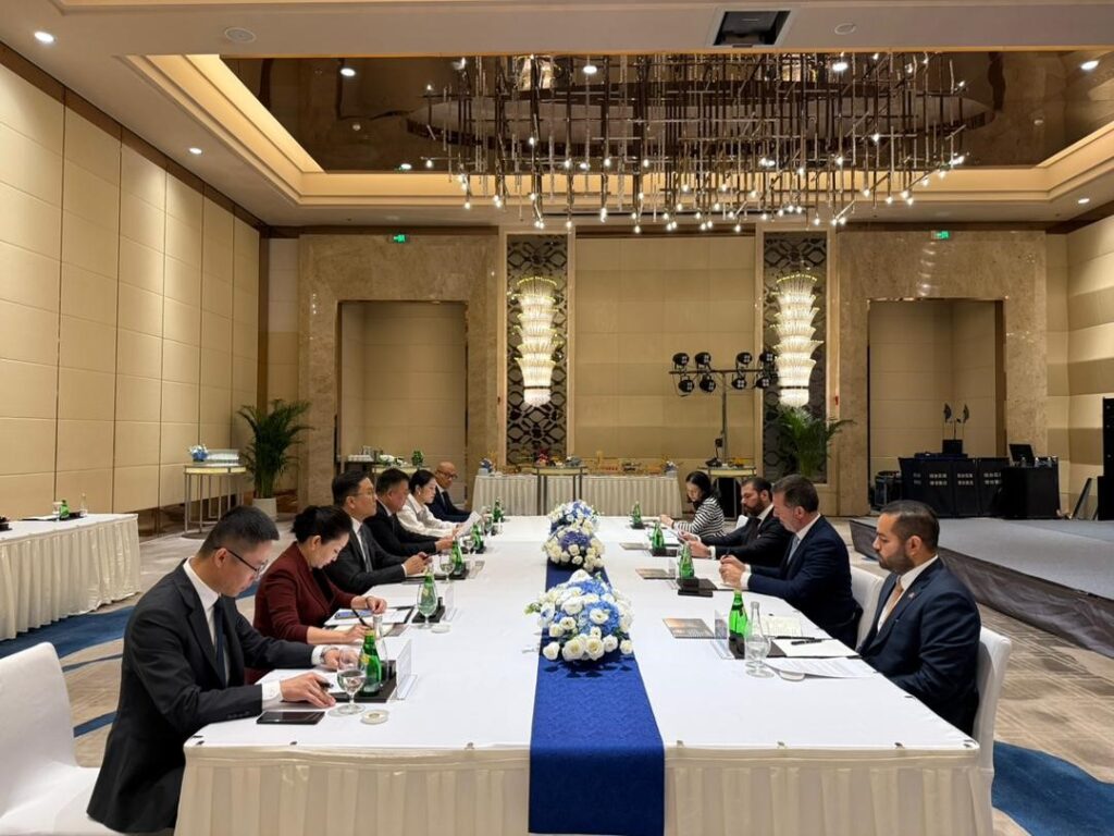 El Compañero Laureano Ortega Murillo ha sostenido encuentro con el Camarada Ren Hongbin, Presidente del Consejo Chino para la Promoción del Comercio y las Inversiones, y con el Compañero An Wei, Miembro del Comité Permanente del Comité Provincial de Henan del PCCh y Secretario del Comité Municipal de Zhengzhou del PCCh.