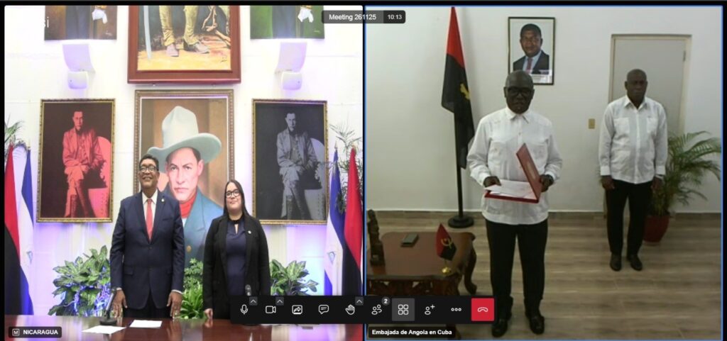 La mañana de este Miércoles 26 de Noviembre de 2025, recibimos en nuestra Cancillería de la República, las Copias de Estilo del Señor Carlos Cruz de Lemos Sardinha Dias, que lo acreditan como Embajador Extraordinario y Plenipotenciario de la República de Angola ante el Pueblo y Gobierno de la República de Nicaragua.