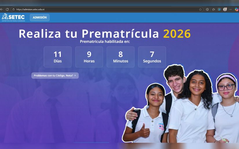 Las prematrículas se realizarán en línea desde la página Web de la Secretaría Técnica de las Universidades con el enlace admision.setec.edu.ni