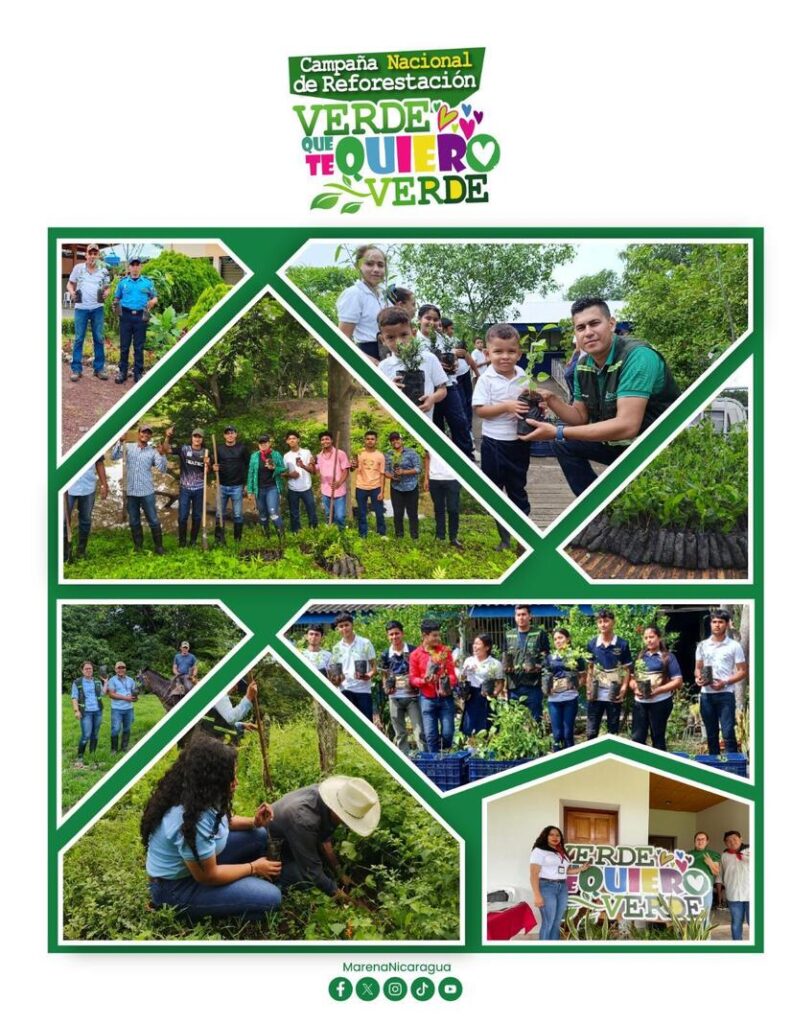 En el marco de la Campaña Nacional de Reforestación “Verde, Que Te Quiero Verde”, el Gobierno Sandinista, a través del Ministerio del Ambiente y de los Recursos Naturales, MARENA, continúa fortaleciendo las acciones de restauración ambiental en el Departamento de Chontales.