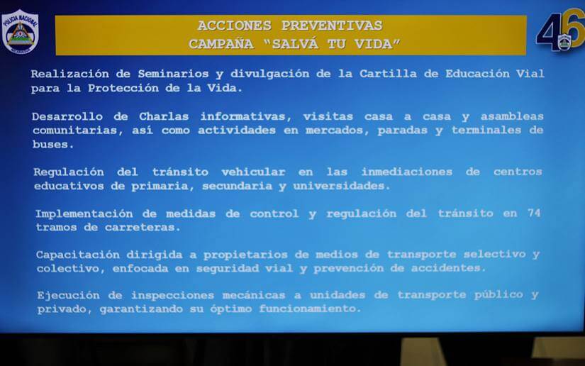 “Con el objetivo de garantizar la protección de la vida y la integridad física de las familias nicaragüenses en carreteras, calles y demás vías del país, informamos a la ciudadanía que durante el periodo comprendido entre el miércoles 1 de enero y el domingo 2 de noviembre del año 2025, se registró una disminución de 31 personas fallecidas y 218 lesionados en comparación con el año 2024”, culminó.