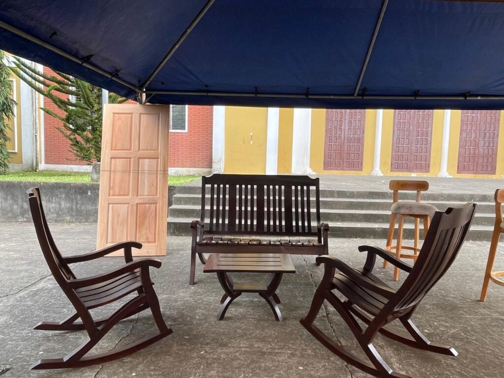 Durante la exhibición, se apreciaron muebles elaboradas con criterios de aprovechamiento responsable, tales como puertas, comedores, sillas mecedoras, exhibidor de gorras, zapateras y artesanías para decorar paredes; además de la exhibición de fauna silvestre que cautivó a los mimados del hogar.