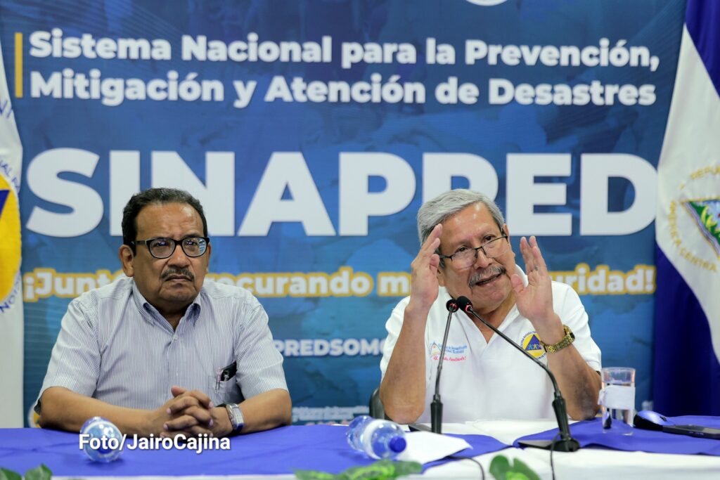 El doctor Guillermo González, Ministro Director del Sinapred, por orientaciones de los Copresidentes, el Comandante Daniel Ortega y Compañera Rosario Murillo, brindó informaciones, junto al director general de Meteorología del Instituto Nicaragüense de Estudios Territoriales (Ineter), Marcio Baca, en relación a este evento que han venido dando atención, desde hace más de una semana, y que se viene desarrollando en la zona del mar Caribe.