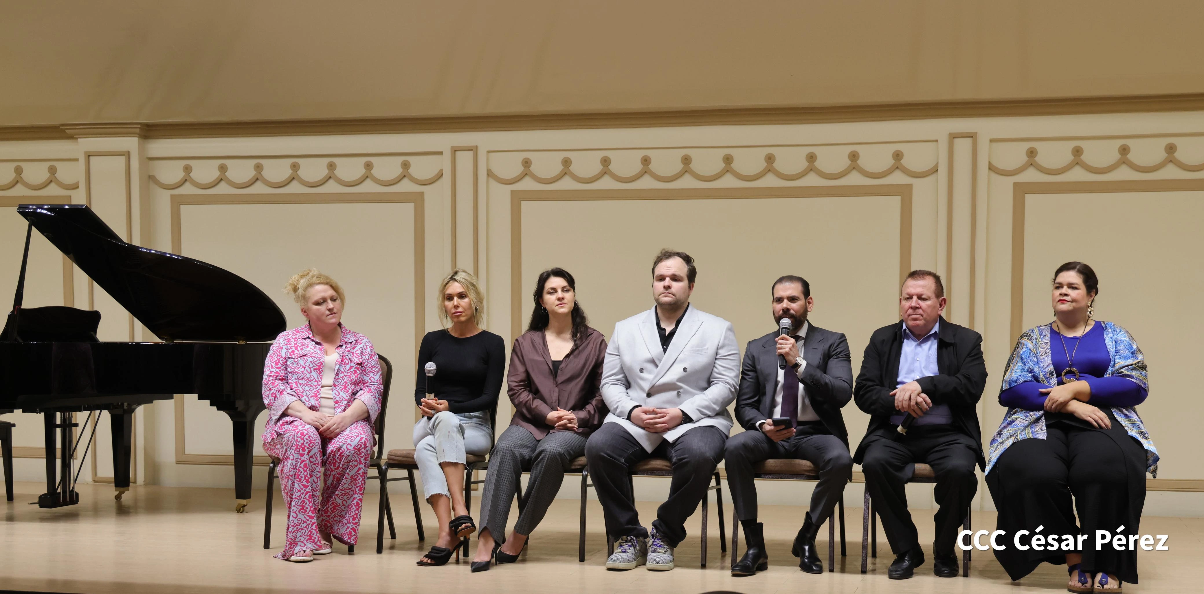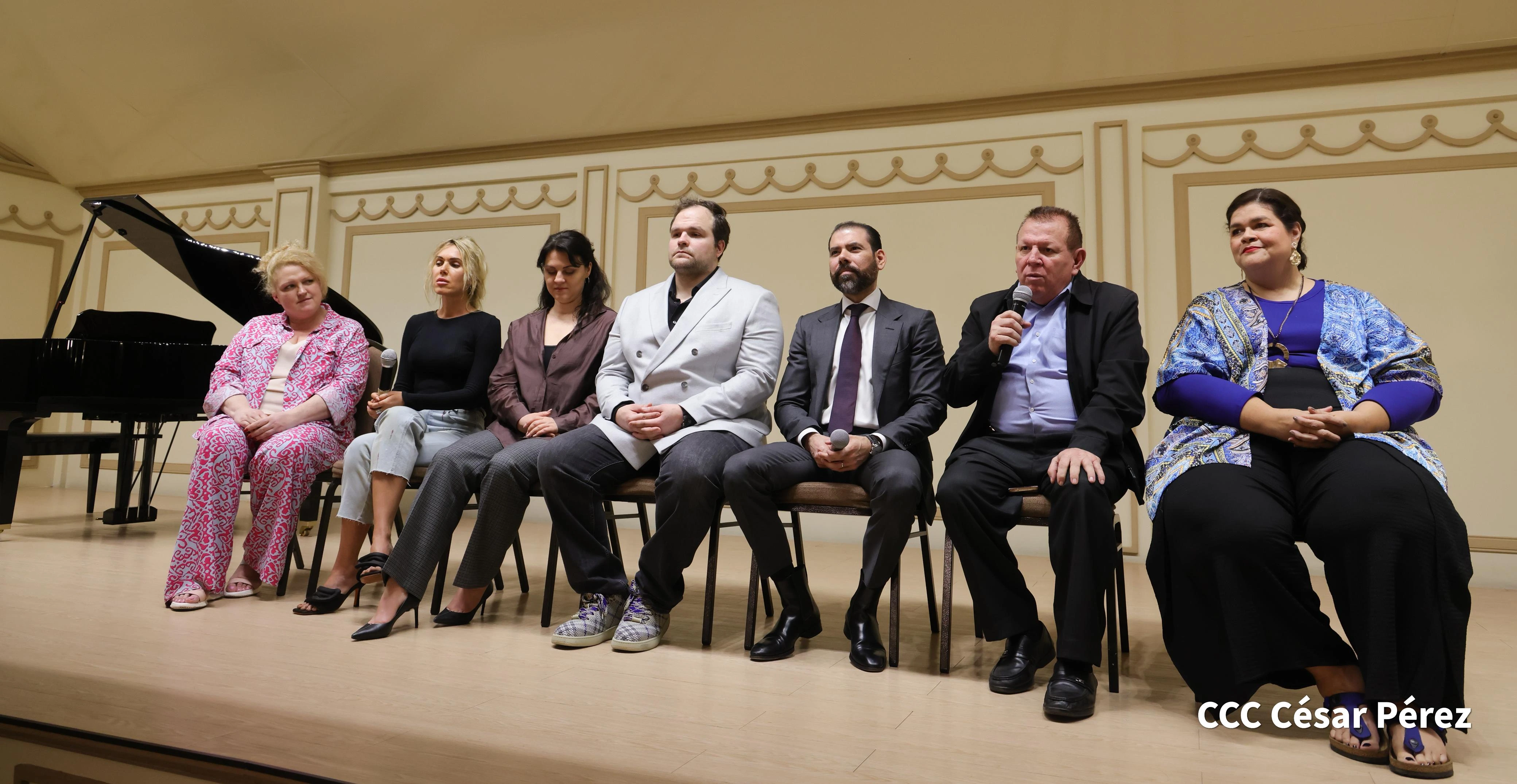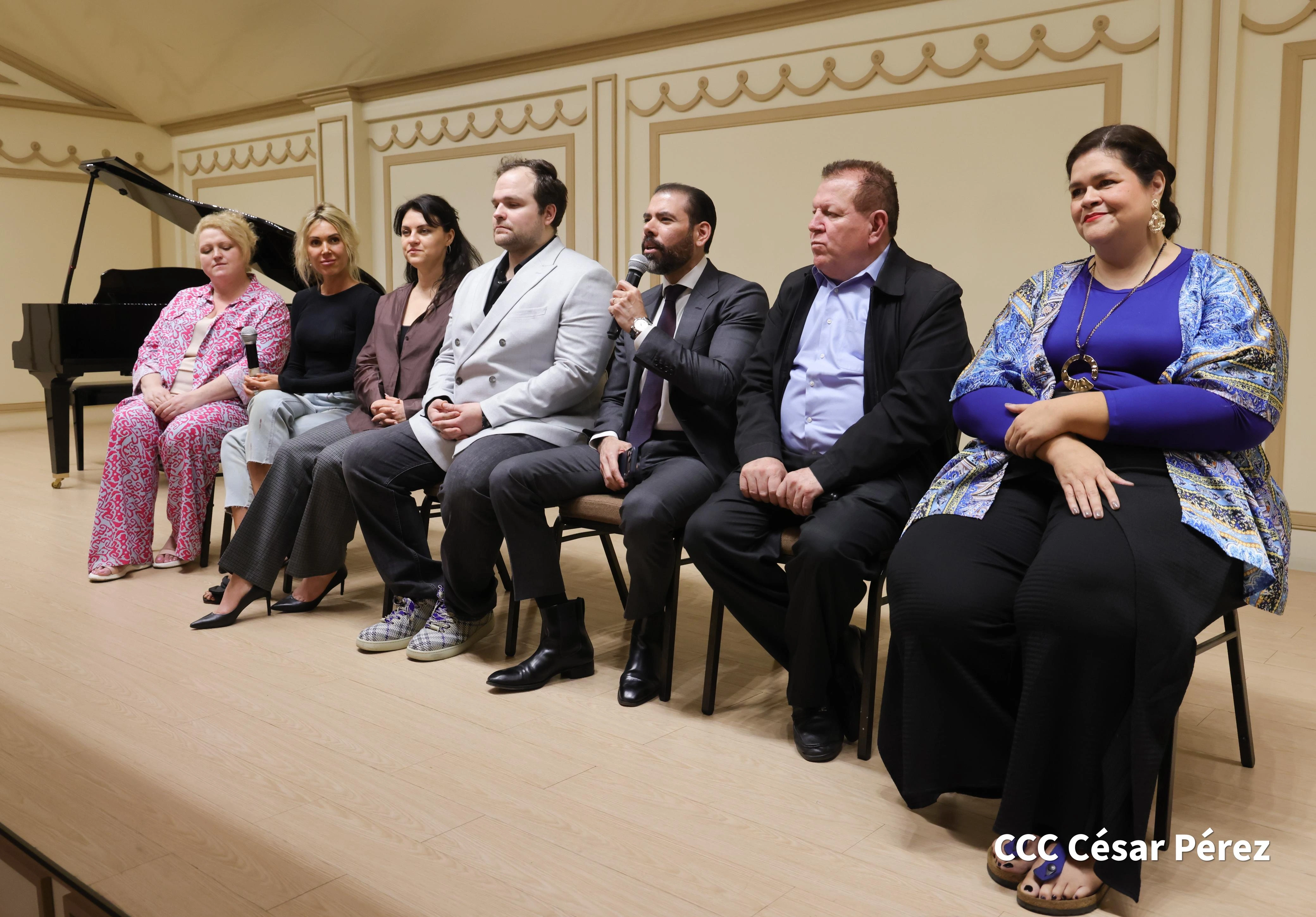 La conferencia de prensa en la que se hizo el anuncio estuvo presidida por el director de INCANTO; Elisa Picado, presidenta de INCANTO; el maestro Ramón Rodríguez, director del Teatro Nacional Rubén Darío y de la Camerata Bach; la primera secretaria de la Embajada de Rusia en Nicaragua, Sofía Kharbikth; Iván Dybov, director para América Latina; Irina Komarova, directora de la Agencia Artística PREMIER; y los artistas rusos del teatro de Moscú, la soprano Venera Gimadieva y el barítono Alexey Isaev.