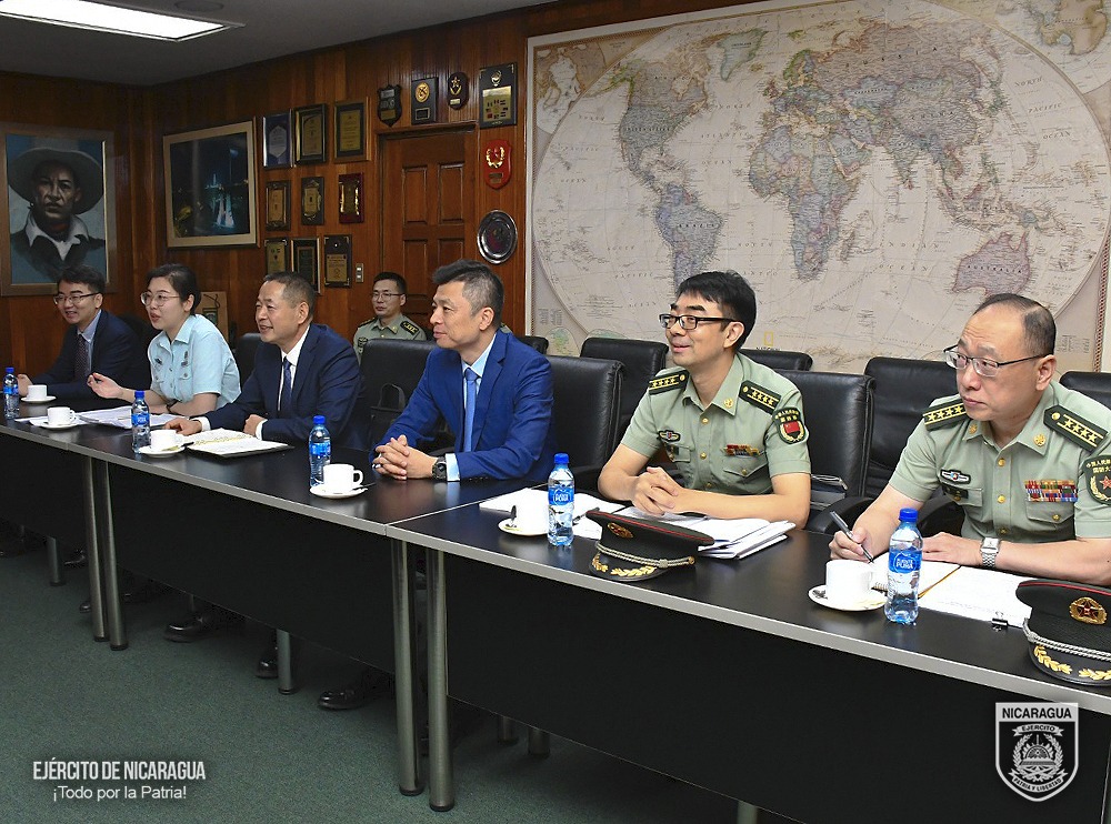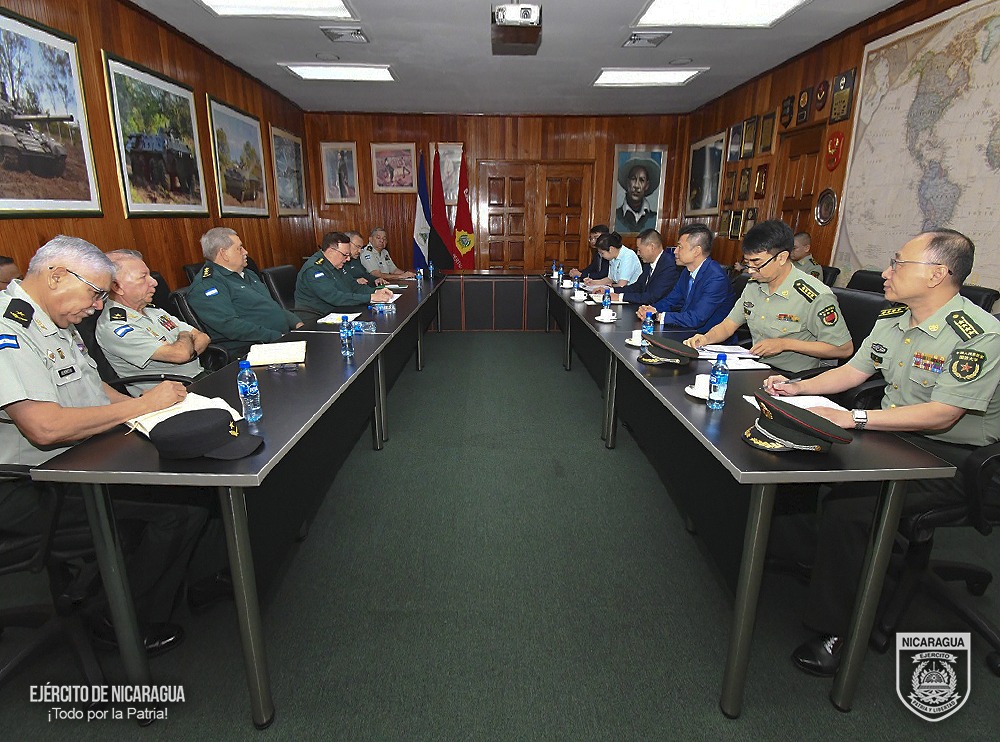 La delegación militar del Ejército Popular de Liberación de la República Popular China, fue recibida por el General de Ejército Julio César Avilés Castillo, Comandante en Jefe de las Fuerzas Militares del Ejército de Nicaragua, acompañado por el Coronel General Bayardo Ramón Rodríguez Ruiz, Jefe del Estado Mayor General y el Coronel General Marvin Elías Corrales Rodríguez, Inspector General.